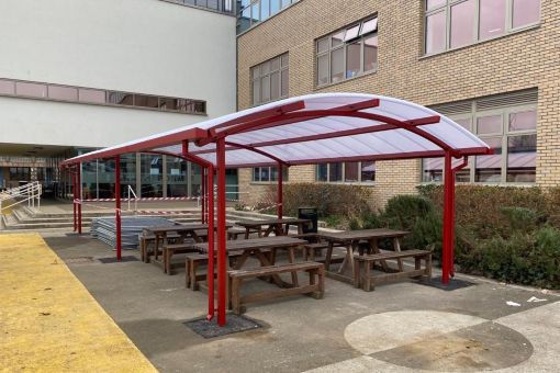 St Mary’s and St John’s CE School in Hendon, Greater London wanted a dining canopy to reduce pressure on its indoor dining facilities. The team at this institution – which has three different campuses – felt that an unobtrusive but appealing design that could withstand both rain and wind would be the most suitable. They got in touch with us as they liked the look and cost of our products.