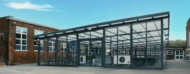 A&S Landscape offers a wide range of shelter solutions that can be perfectly tailored to the needs of busy school sites. In the case of Sir Thomas Rich’s School, the area that they wanted to renovate was between existing buildings. The perfect solution for sites like this was our Motiva Duo™ canopy with a curved roof design. Available in a variety of dimensions, this shelter solution can be modelled to cover just about any size of area. The versatile canopy architecture also means that it can be constructed with optional side panels, and, if required, doors with a choice of options. Tailored customisation of the structure is also achievable by selecting from our range of steel and polycarbonate roof colours. With our experts on hand to walk you through the process, we can help you find the perfect shelter solution for your commercial school project.