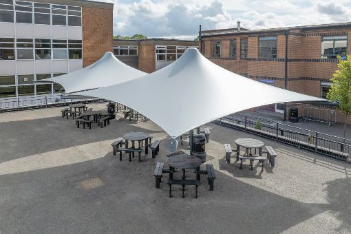 The leadership team recognised that many pupils wanted to use outdoor areas for dining and socialising, but poor weather often made this difficult. They wanted a practical, attractive, and durable solution that could offer shelter in all conditions.