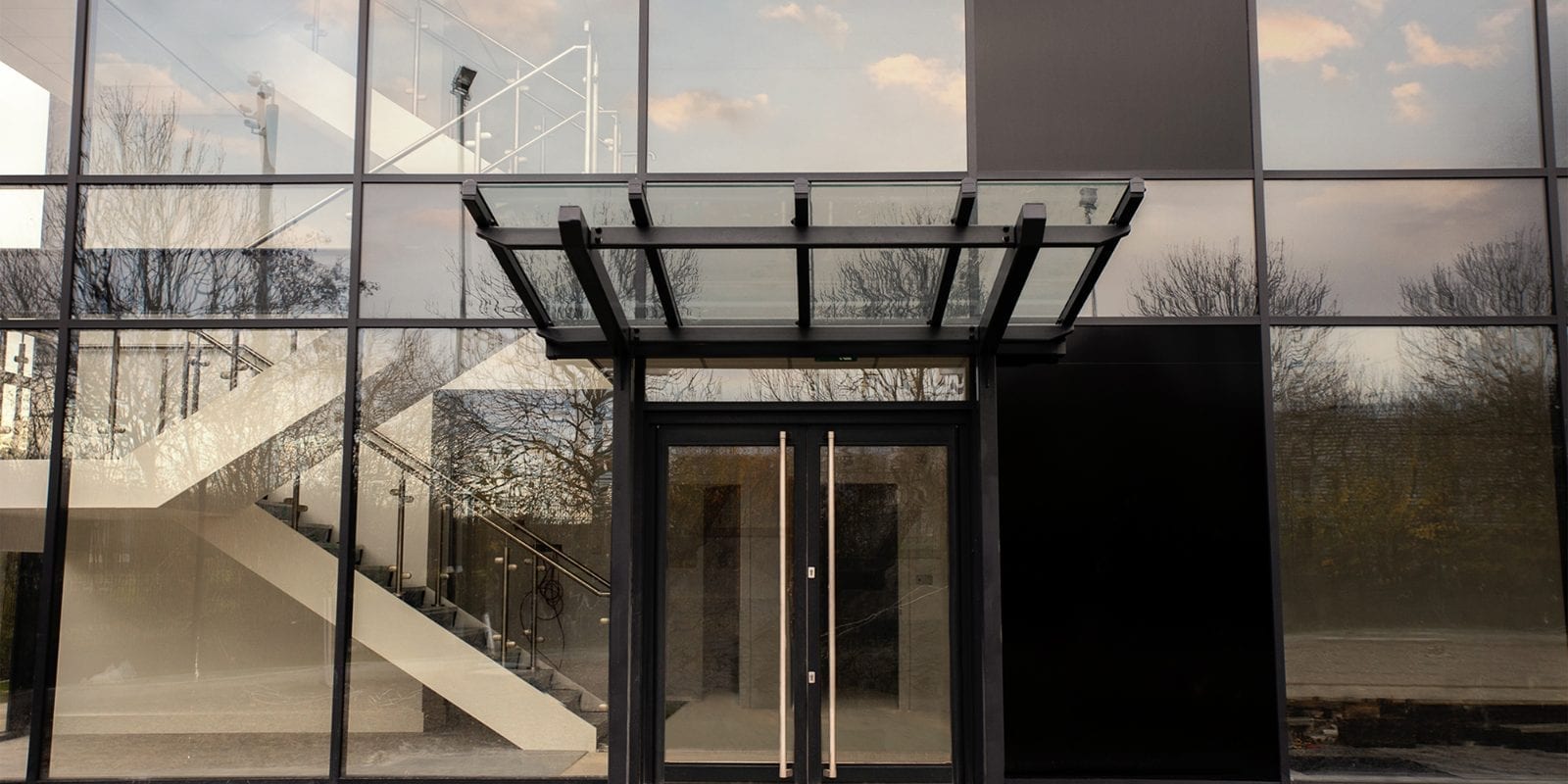 Estuary Boulevard in Liverpool Add Stylish Straight Roof Entrance Canopy