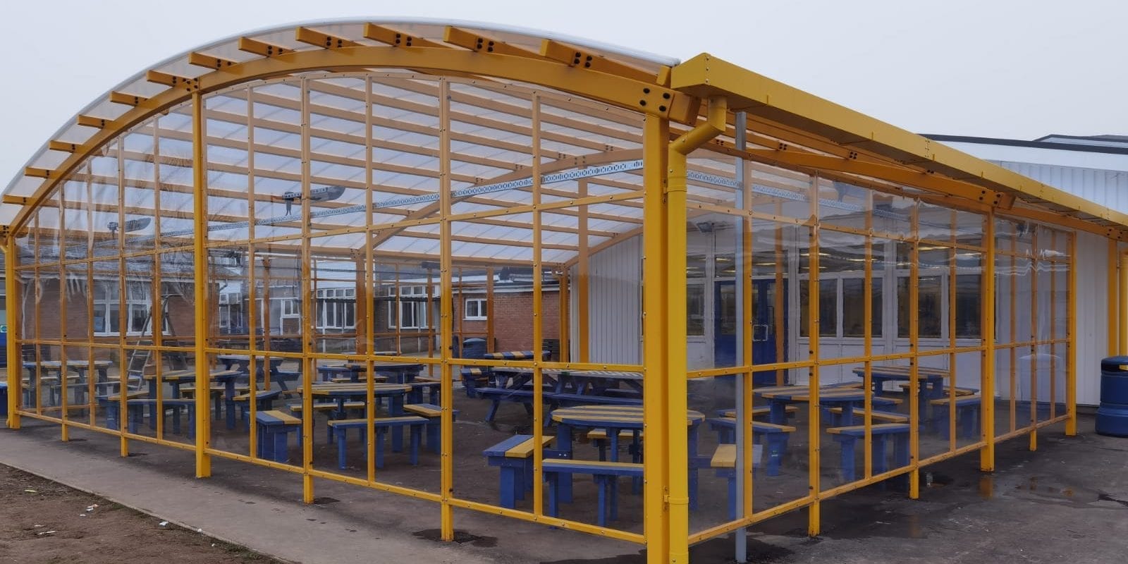 The staff decided on Flame Red steelwork to add a splash of colour to the canopy structure and bring something bright and exciting to pupils’ school days. Furthermore, the straight roof of Opal polycarbonate sheeting provided excellent protection from both rain and wind, so the shelter could be enjoyed in all weather, good or bad.