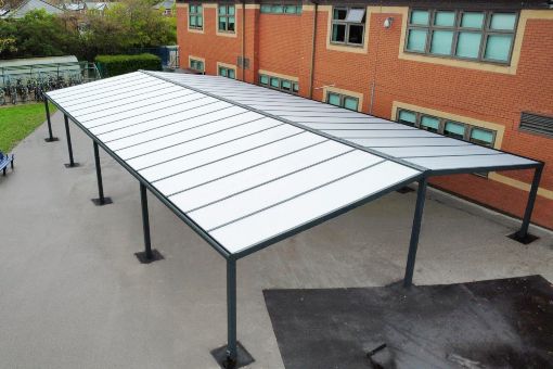 Canopies can revolutionise the look of a school and the range of models and customisation options mean that there is one to suit any brand or style. We have the right steelwork and roof options for you – whether you want to cheer up your playground with bright colours or make your outdoor areas look more sophisticated with a modern design.