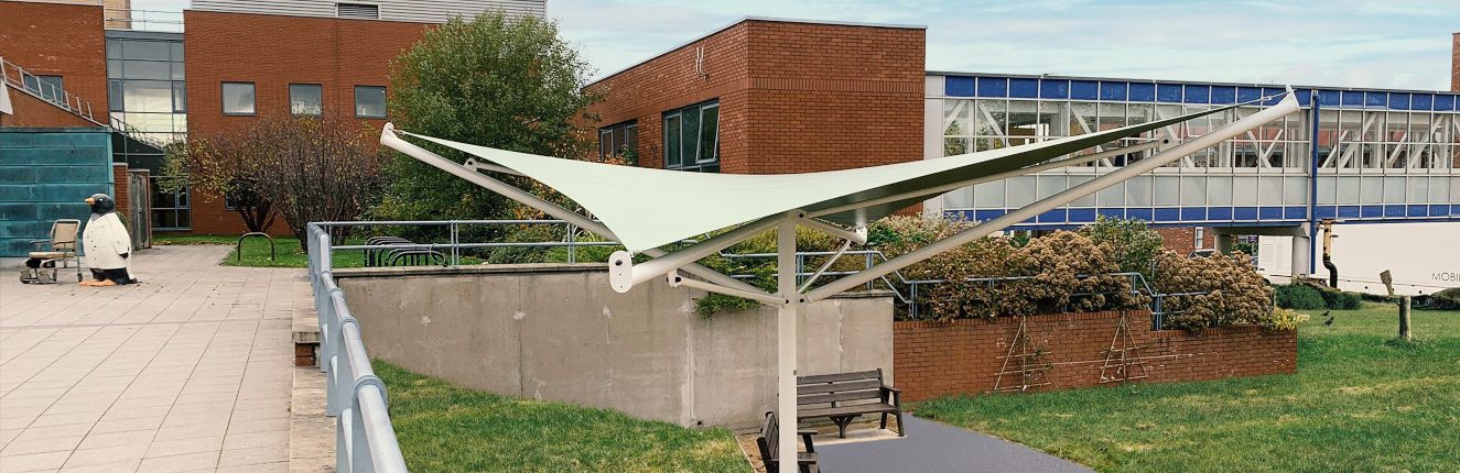 Following discussions about their needs and their vision for the shelters, Green Park School picked out the Maxima StarSail™ model. It attracted them because of its spectacular, innovative design which combines the benefits of several products, as well as its durability and lengthy guarantees. Each built to specifications of 7000mm X 7000mm, the two shade sails provided plenty of protection for the children from sun and rain, and their versatility meant that they could be used at playtimes, lunchtimes, for outdoor learning or even for shielding waiting parents from the elements. The staff also chose Squirrel Grey steelwork and Champagne fabric roofs to create a modern, attractive design that complemented the school’s existing architecture.