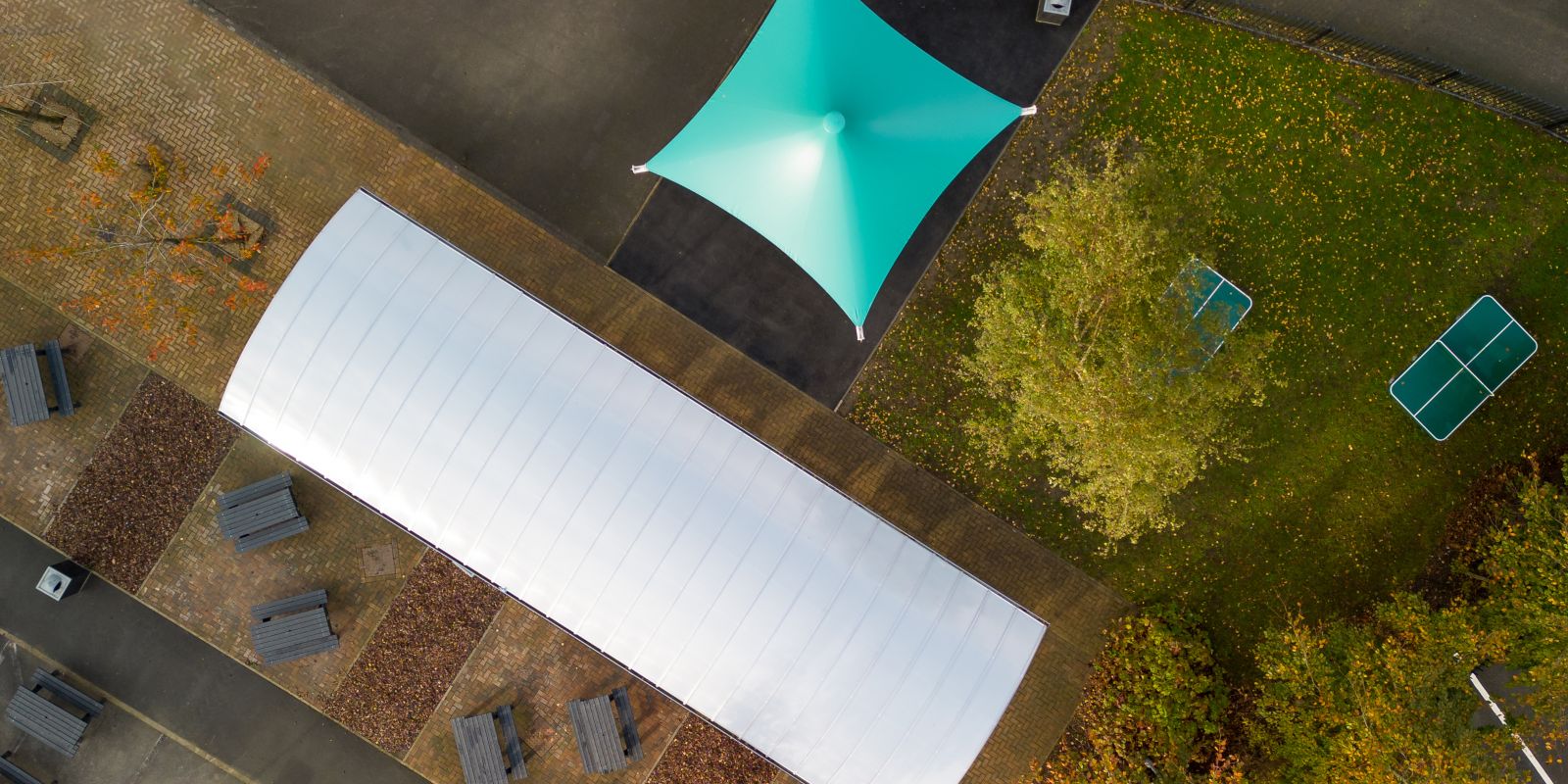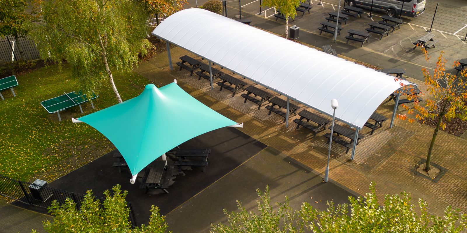 The outdoor seating canopies have given the students at Leeds West Academy the opportunity to get outside every day, regardless of the season. They can now sit on our sturdy benches and chat with friends, refuel with healthy snacks at break time, or eat their lunch beneath a range of appealing shelters that can stand up against the rain and wind. Though sporting different colouring and materials, the polycarbonate and tensile fabric canopies make for a wonderful atmosphere and work well together. We thoroughly enjoyed seeing this collection of our products being used and appreciated by this community.