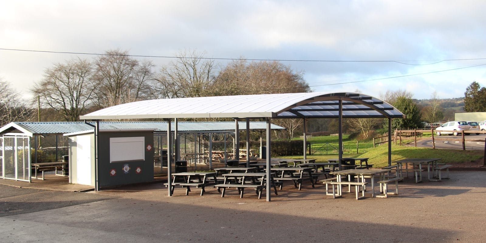 Meole Brace School Science College in Shrewsbury, Shropshire has created an additional dining area, which has relieved pressure from the existing dining hall. We also installed a large dining area shelter for Lymm High School in Cheshire. Students can now socialise, relax and eat out in the fresh air no matter the weather, refreshed for their next lessons. Staff can also choose to teach lessons outside without worrying about the weather, thanks to the new canopy. The entire school has benefited from the new sheltered area.
