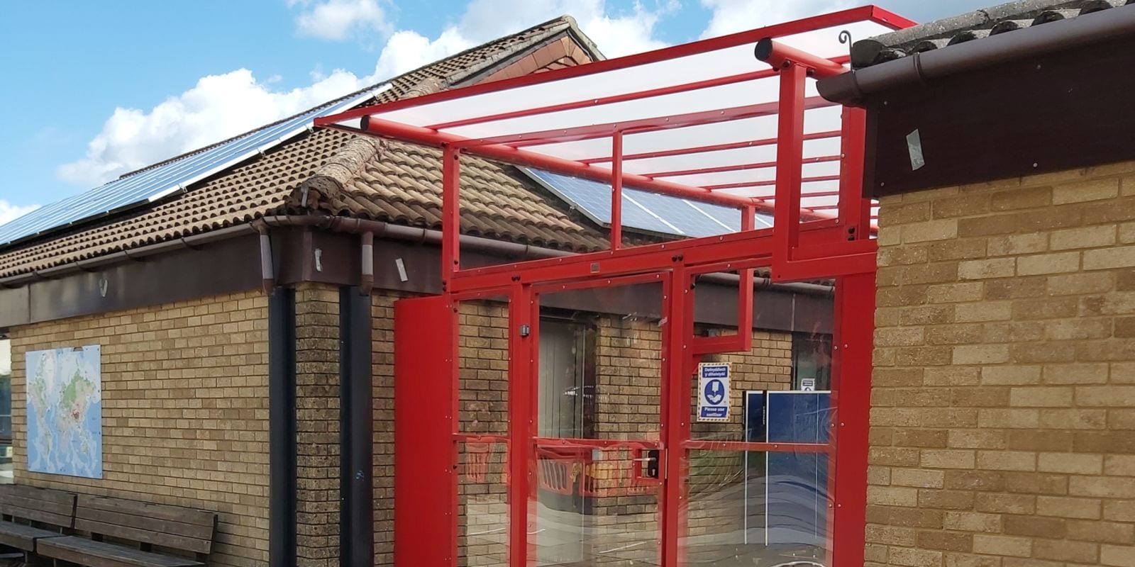 Saddleworth School Add Straight Roof Polycarbonate Shelter
