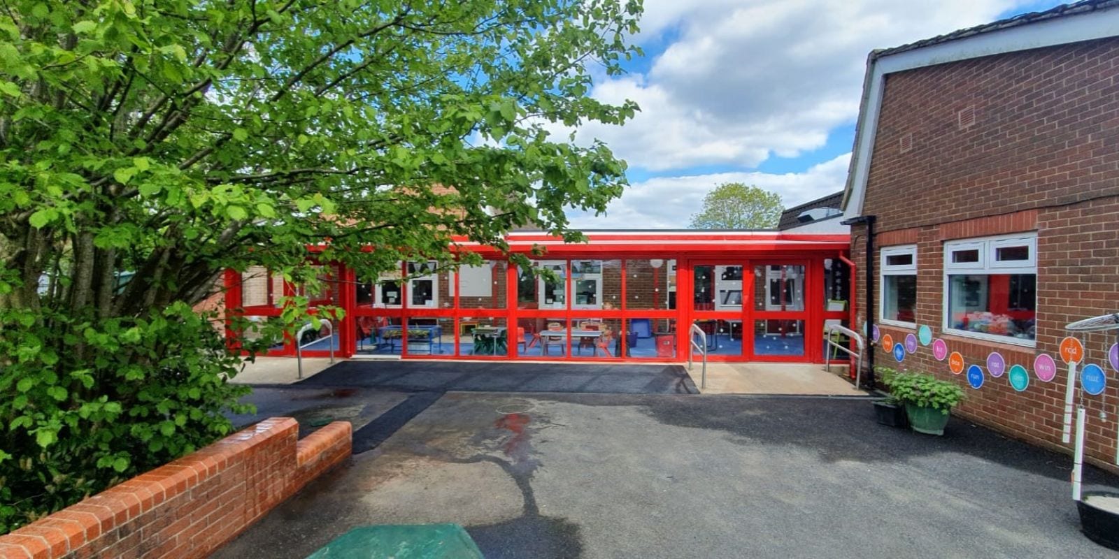 Three Curved Roof Shelters Added to Rowanfield Infant School
