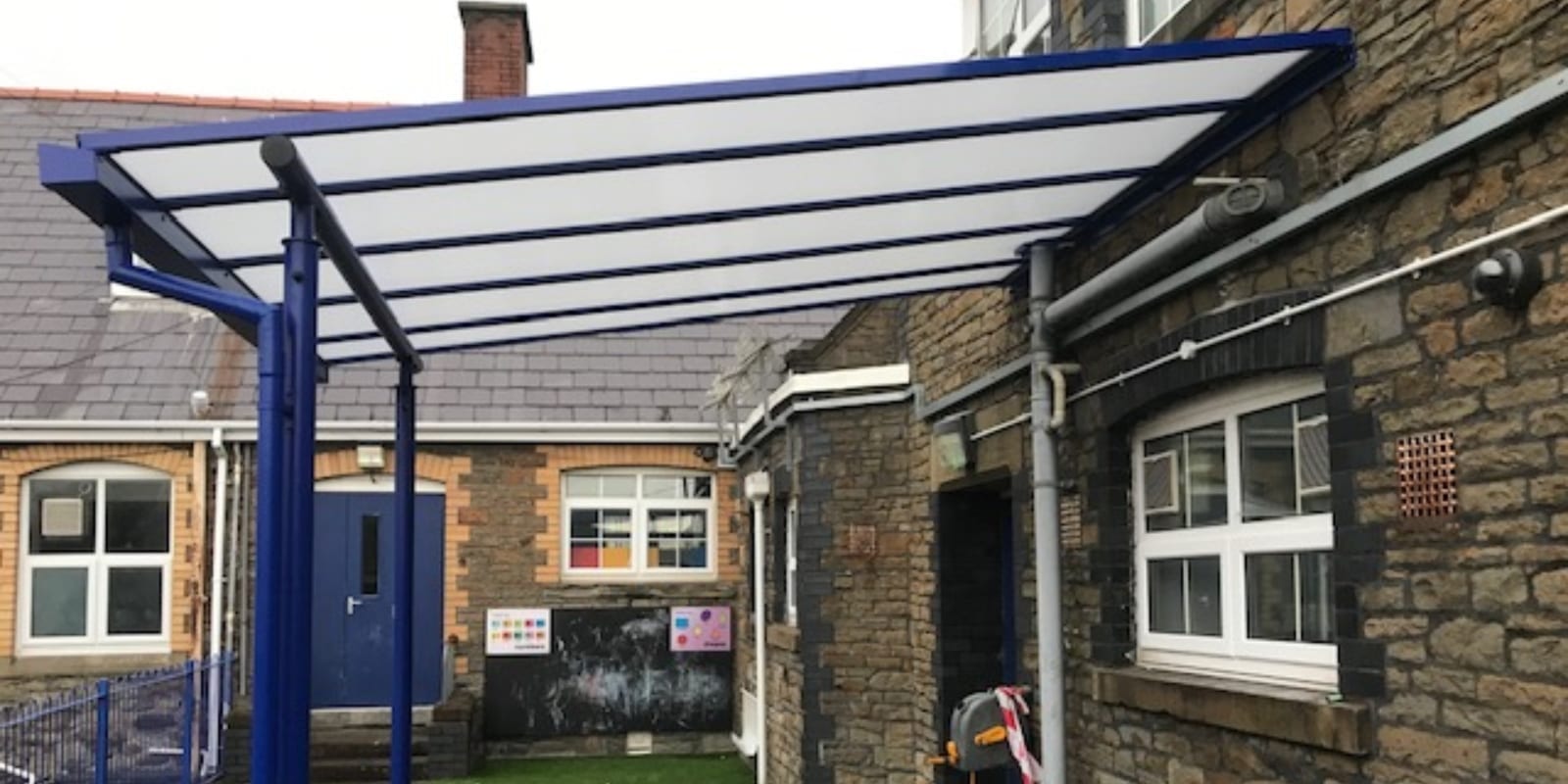 Saddleworth School Add Straight Roof Shelter with Polycarbonate Roof