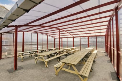 Poltair School in St Austell, Cornwall had the idea to purchase a dining canopy to increase capacity at lunchtimes for their students. The staff wanted to find something robust that could be used throughout the year and withstand the Cornish winds. They got in touch with A&S Landscape, who was quick off the mark to consider all of the options available and provide expert advice.