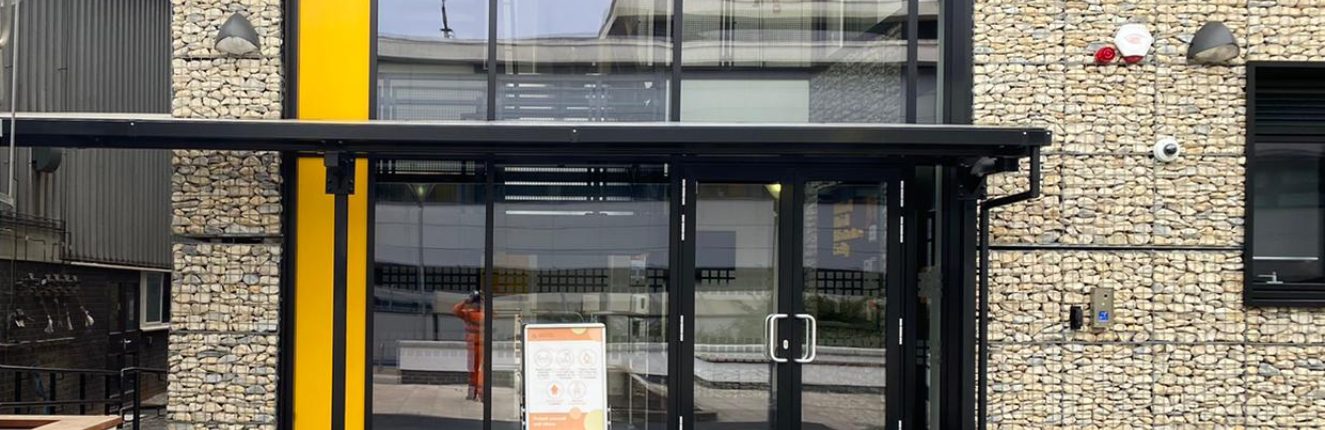 Our engineers erected a straight polycarbonate roof canopy in Stoke Dameral Academy Plymouth, Devon. The job involved the supply and installation of one Motiva™ monopitch straight roof canopy measuring 14000mm X 4000mm and 12000mm x 2000mm and included for our Alu-Tuff™ aluminium box profile guttering and downpipes in matching Dura-coat™ colour finish.