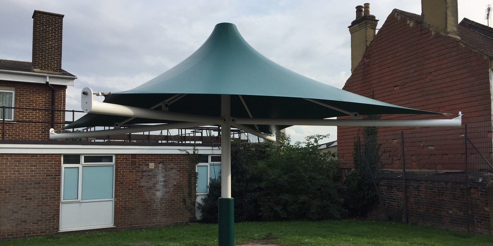Our team designed a shade sail structure in Thomas Willingale School, The Broadway, Loughton, Essex. The job involved one 5500mm X 3500mm Maxima™ tensile shadecloth fabric sail structure comprising of one square sail on four uprights including for all stainless steel fixtures and fittings and four post protector pads.