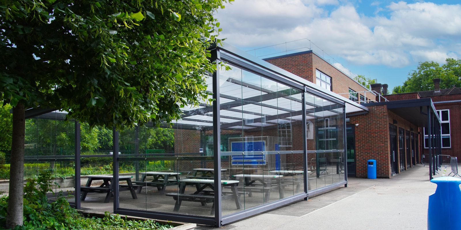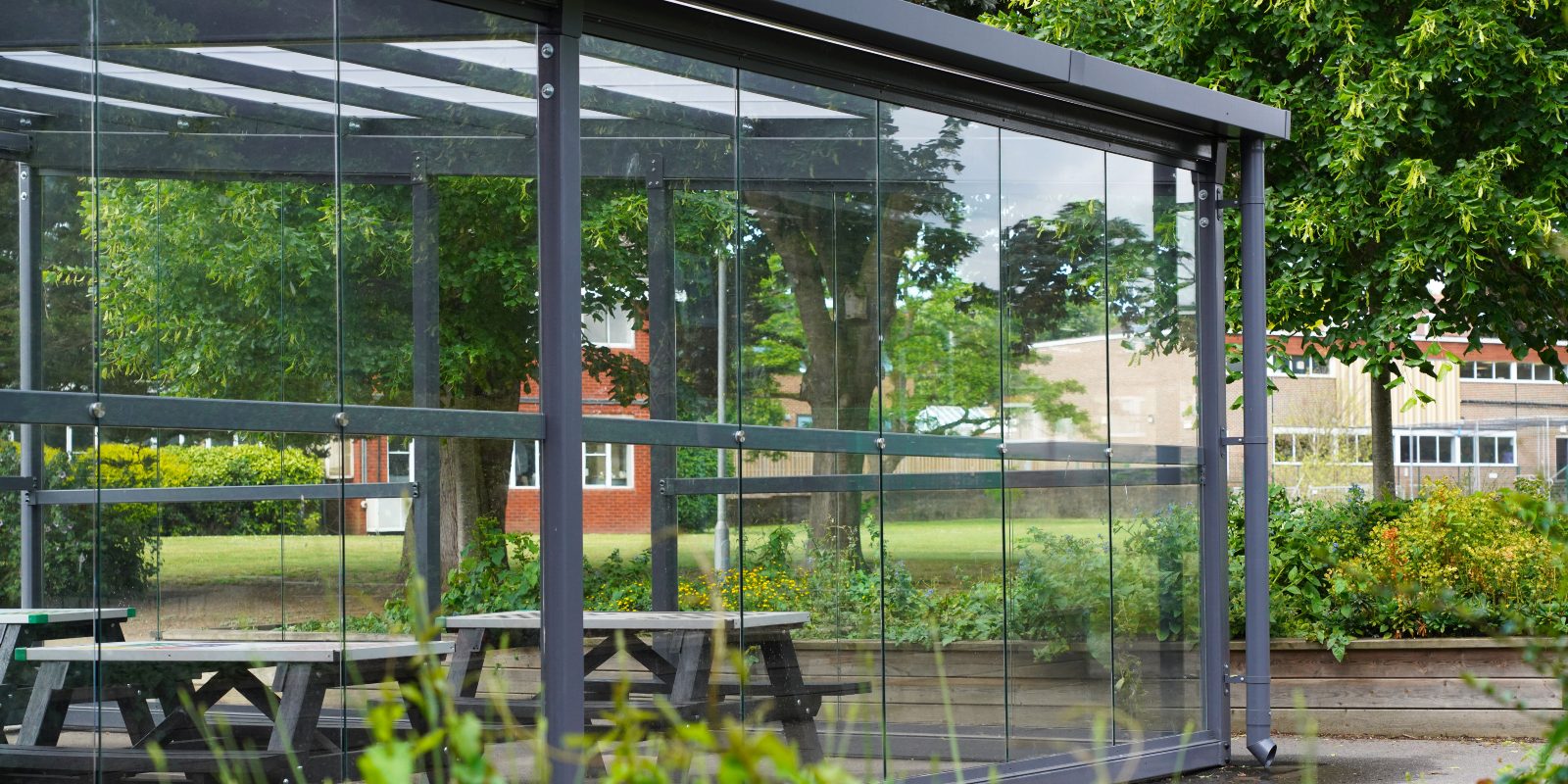Richmond Park Academy in London was in need of a dining shelter to reduce pressure on its existing facilities and facilitate more comfortable break times for all. They were thinking of having a bespoke model installed so it would meet their needs exactly, with a sleek look to reflect the school’s values and glass side panels for extra protection from the elements. This would create a top-quality outdoor space where students could relax and take time away from their studies, no matter the weather. The team got in touch with us because they liked our product design and we had worked with the Trust before.