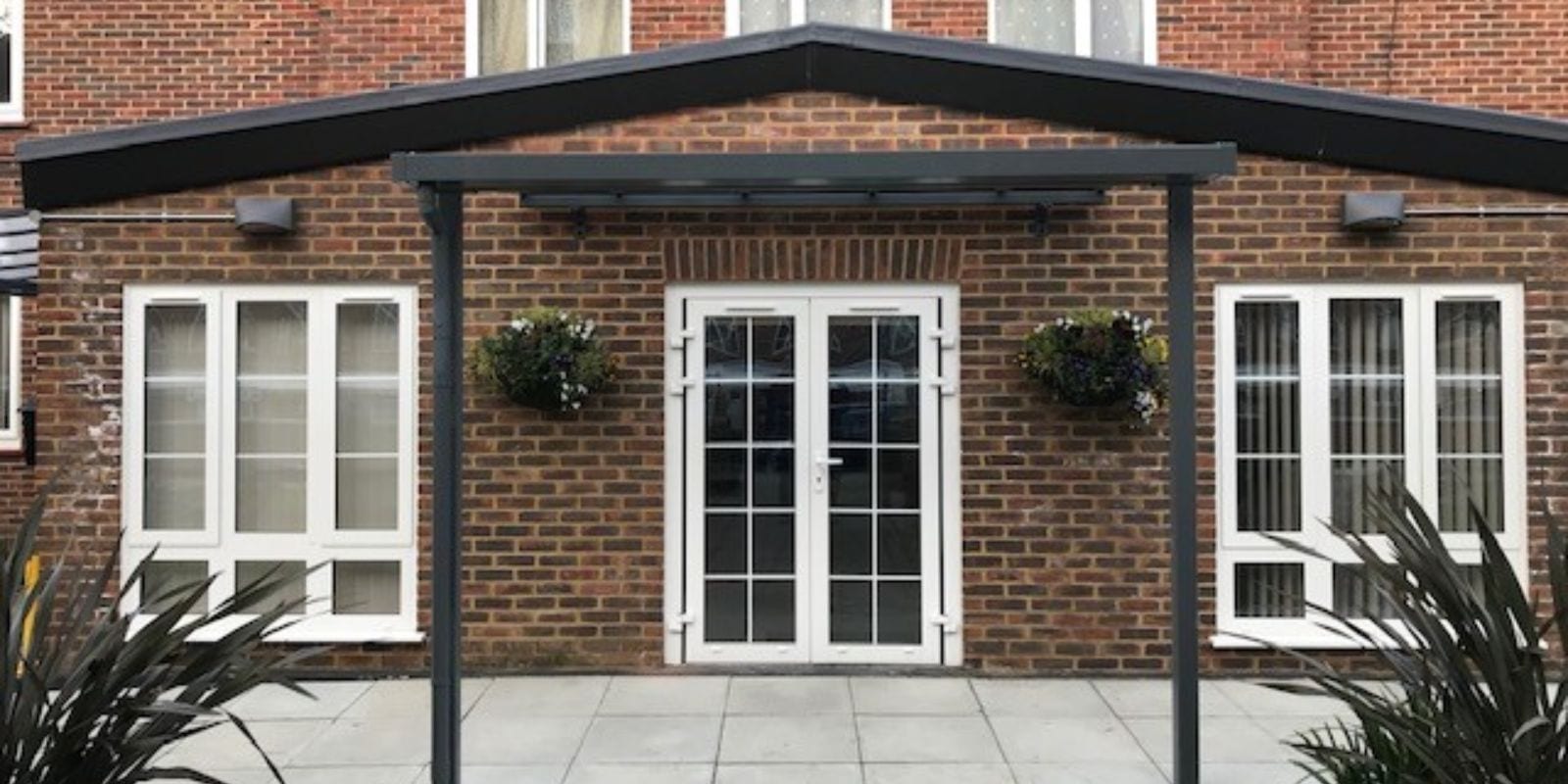 Our team created a straight polycarbonate roof canopy for The Olive School Hackney, London, Greater London. The job involved one steel framed Motiva Linear™ monopitch straight coloured polycarbonate roof canopy measuring 9000mm X 3900mm and included for our Alu-Tuff™ aluminium box profile guttering and downpipes in matching Dura-coat™ colour finish and six post protection pads.