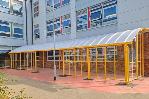 For the canopy next to the sports pitches, Ryde Academy decided that the Motiva Duo™ would be the best model for the job. Built to measure 10,000mm X 10,000mm and also coming with handy glazed panels, it offered plenty of space for multiple uses like a games or outdoor classroom shelter. The curved roof was also an eye-catching addition that brought more interest to the space. Both canopies sported Signal Yellow steelwork and Opal roofs built from durable materials that would look fantastic and last for years to come, as well as allow the children to spend more time in the fresh air, no matter the season.