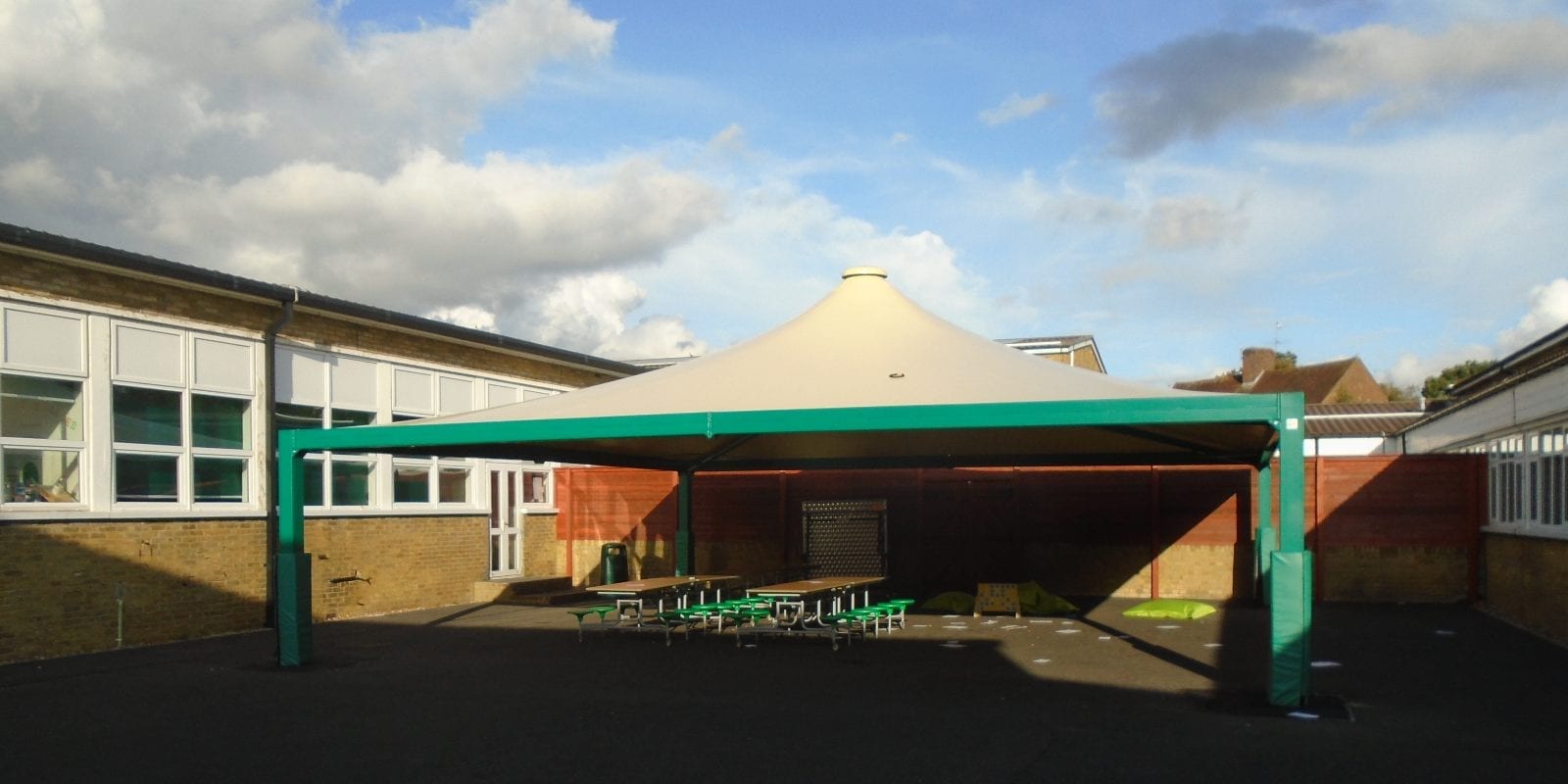 Fabric Tensile Tepee Canopy Installed at Thomas A Becket Junior School