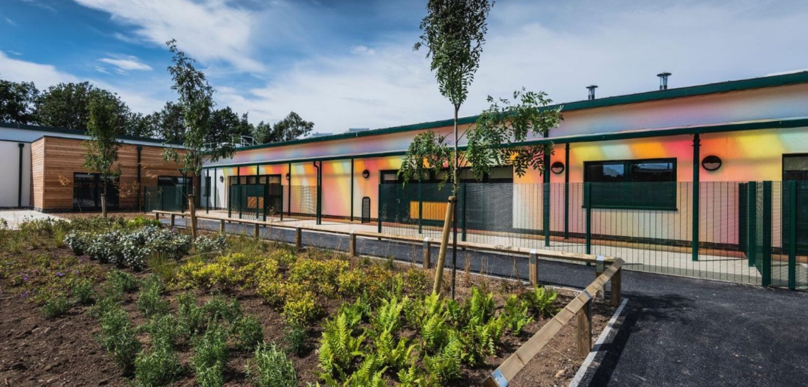 Colourful Straight Roof Shelter Designed for Lower Heath CE School