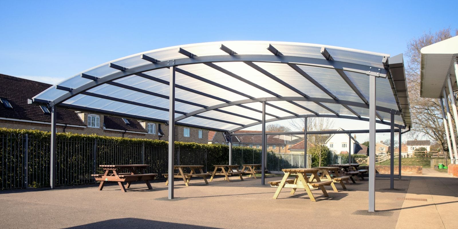 The students and staff are already enjoying the new outdoor canopies throughout the day, from before lessons begin to during lunch breaks. They provide an attractive outside space, away from the classroom, and without the threat of the weather ruining students’ fun. The new canopies can be utilised throughout the school’s busy timetable so that all year groups can benefit from outside socialising and learning.