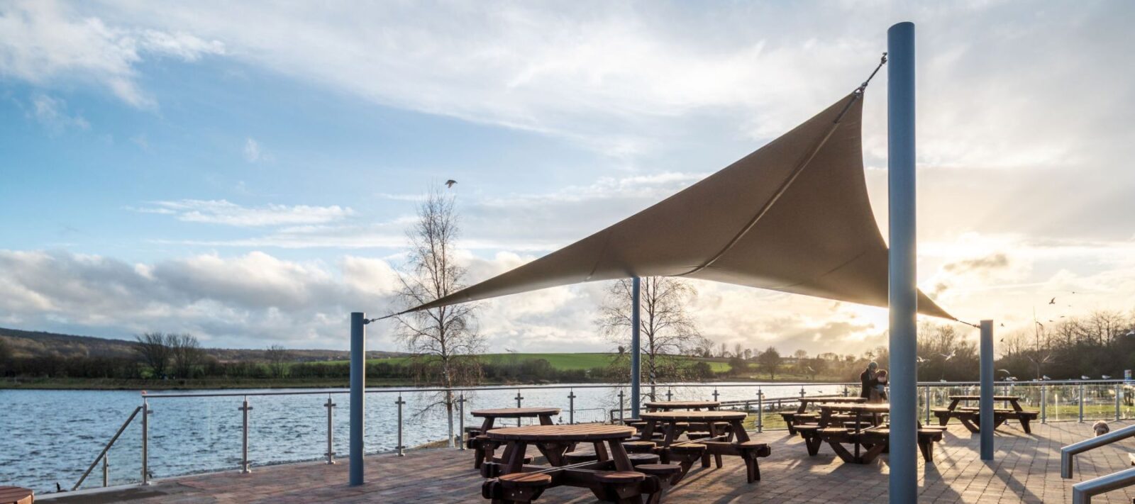 A&S Landscape worked with Rotherham Metropolitan Borough Council from the planning stage. The cafe terrace overlooks the lake, so we needed a design that added shelter without blocking sightlines. After reviewing the space and visitor flow, we recommended a Maxima Sail™ canopy.